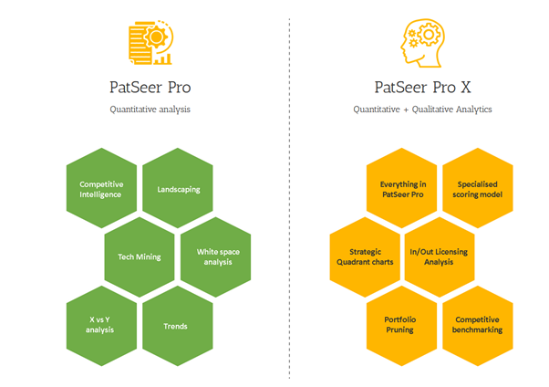 Pro X yhdistää keinoälyn (AI), big data –analytiikan sekä mittavan visualisoinnin yhdeksi intuitiiviseksi työvälineeksi IP business-käyttäjille ja luo nopeasti tuloksia ja analytiikkaa ja näyttää ne monipuolisena ja visuaalisena raporttinäkymänä, jonka avulla on helppo identifioida teknologia- ja kilpailijatrendejä, mahdollisia heikkouksia, vahvuuksia ja mahdollisuuksia omassa tai muiden teknologioissa sekä auttaa ennakoimaan tarvittavia toimenpiteitä.