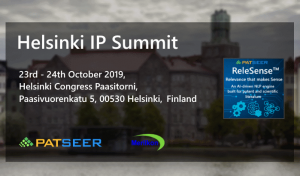 PatSeer Gridlogics ja Merilkon sponsoroivat Helsinki IP Summit – tapahtumaa 23. – 24.10.2019